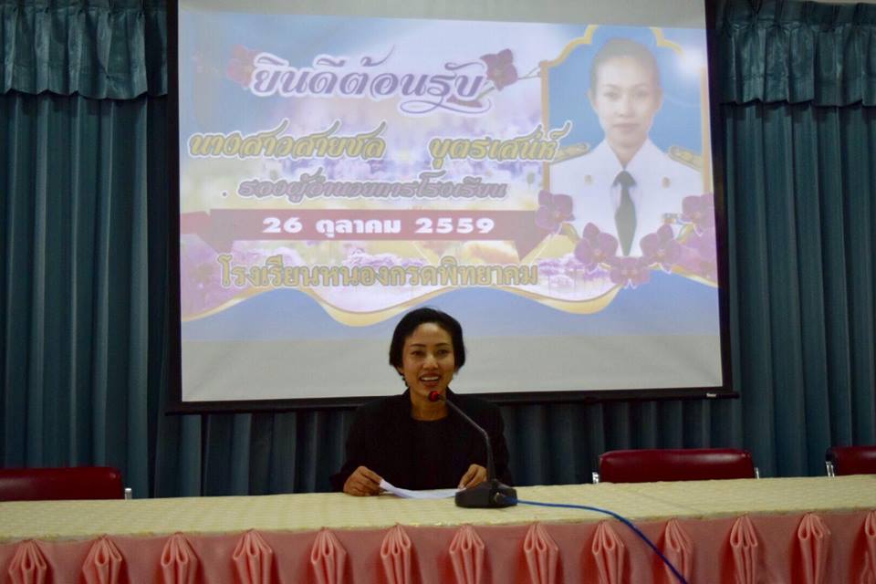 โรงเรียนหนองกรดพิทยาคมยินดีต้อนรับ นางสาวสายชล บุตรเสน่ห์ รองผู้อำนวยการจากโรงเรียนเทพศาลาประชาสรรค์ ในการมาดำรงตำแหน่งรองผู้อำนวยการโรงเรียนหนองกรดพิทยาคม ในวันพุธ ที่ 26 ตุลาคม 2559 ด้วยความยินดียิ่ง