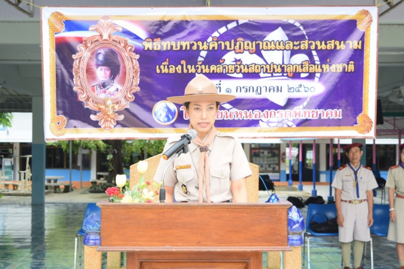 พิธีทบทวนคำปฏิญาณและสวนสนามเนื่องในวันสถาปนาคณะลูกเสือแห่งชาติ ณ โรงเรียนหนองกรดพิทยาคม ในวันที่ 5 กรกฎาคม 2560 โดยมีนางสาวสายชล บุตรเสน่ห์ รองผู้อำนวยการโรงเรียนหนองกรดพิทยาคมเป็นประธานในพิธี