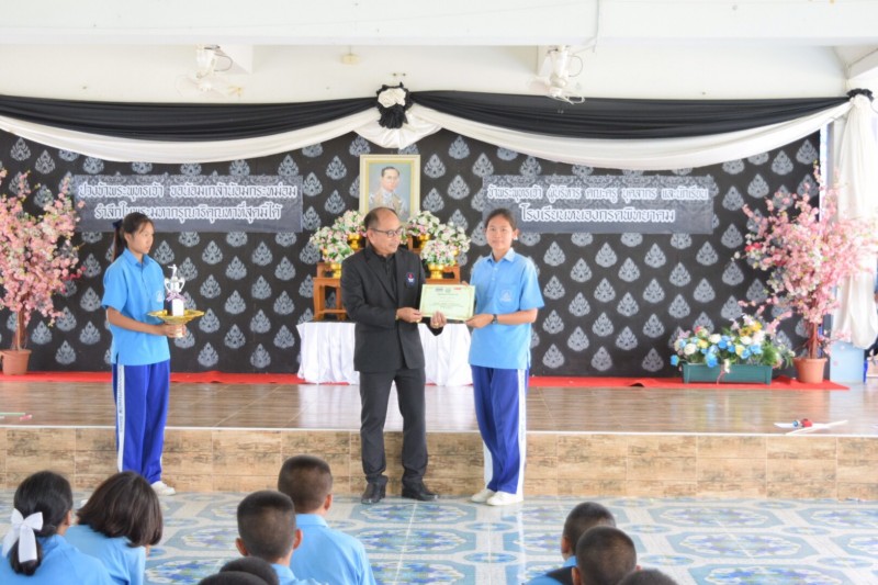 ผู้อำนวยการสิงหวรรธน์ มาตราช มอบเกียรติบัตรแก่นักเรียนผู้มีความสามารถ ดังนี้