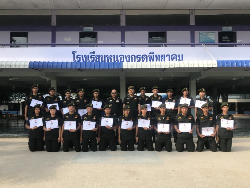 ผู้อำนวยการโรงเรียนหนองกรดพิทยาคม มอบเกียรติบัตรให้กับนักศึกษาวิชาทหารชั้นปีที่ 1-3 ประจำปีการศึกษา 2560 โดยมีคุณครูณัฐวุฒิ สอนชม เป็นผู้ควบคุมดูแลการฝึกอบรม