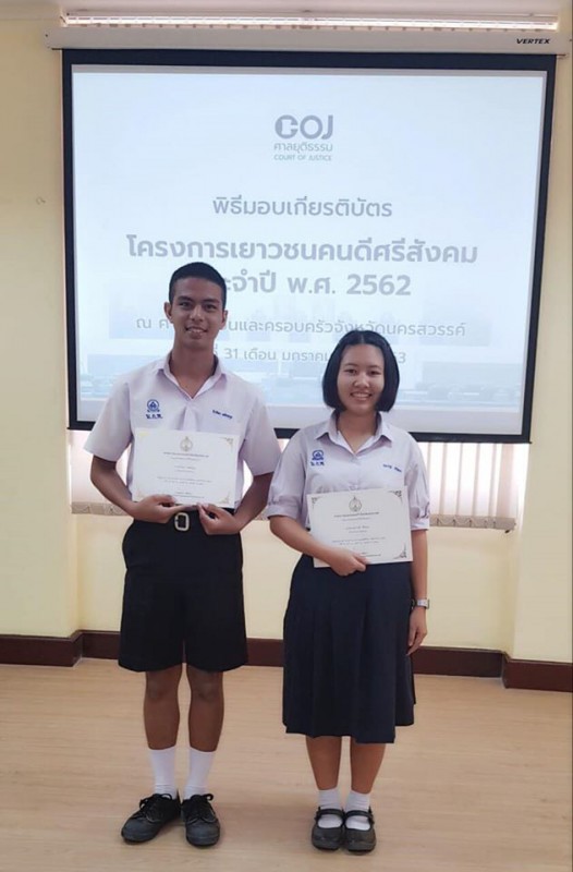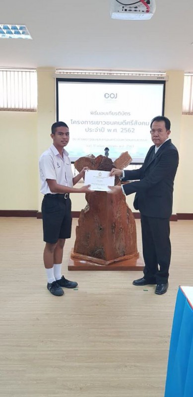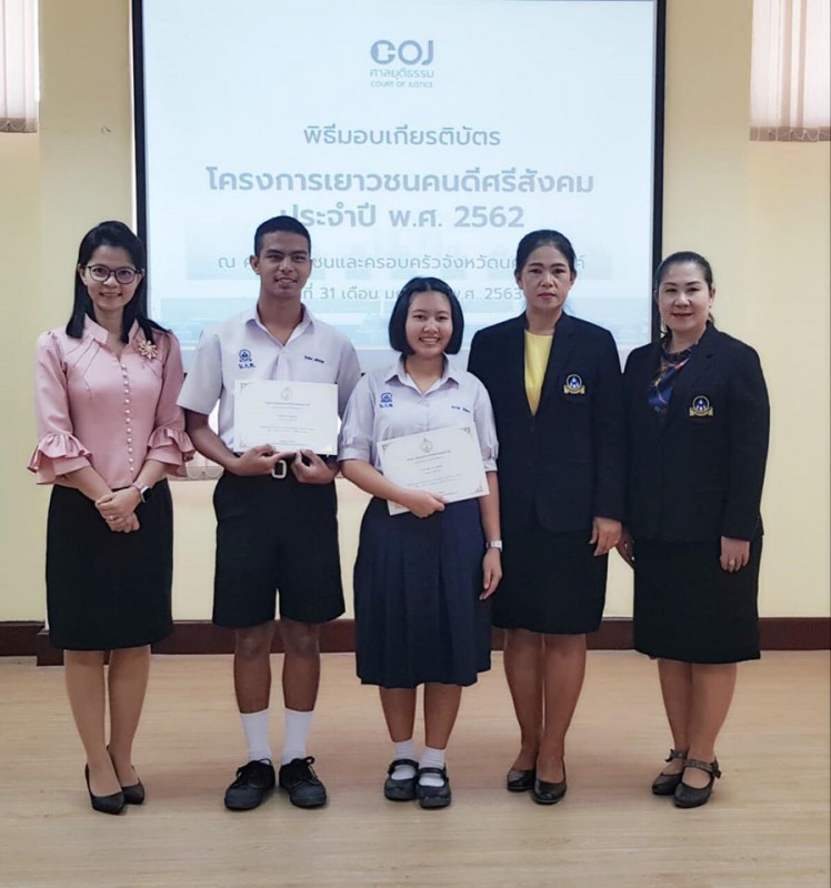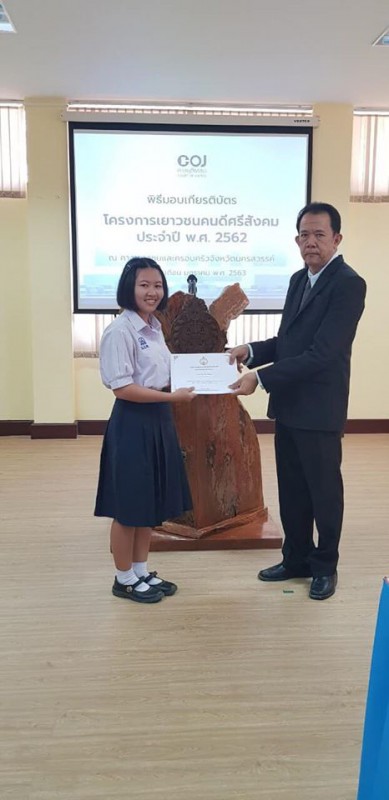 นักเรียนรับรางวัลเยาวชนคนดีศรีสังคม ประจำปี พ.ศ. 2562