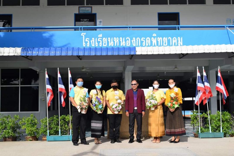 วันศุกร์ที่ 3 กรกฎาคม 2563 ผู้อำนวยการสิงหวรรธน์ มาตราช คณะครู และนักเรียนโรงเรียนหนองกรดพิทยาคมร่วมแสดงความยินดีกับ ครูกฤติมา กองทองนอก ครูทัศณี ทะอินเลย ครูพิพัฒน์ ผาสุขขี ครูณัฐวุฒิ สอนชม ครูศศิธร ขจรจิตต์ ที่ได้รับการแต่งตั้งให้เลื่อนวิทยฐานะเป็นครูชำนาญการพิเศษ (ครู ค.ศ.3)