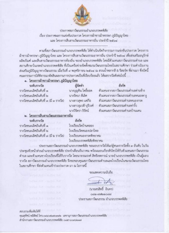 การแข่งขัน โครงการผ้าขาวม้าหรรษา ภูมิปัญญาไทย และโครงการสืบสานวัฒนธรรมอาหารถิ่น ประจำปี ๒๕๖๔