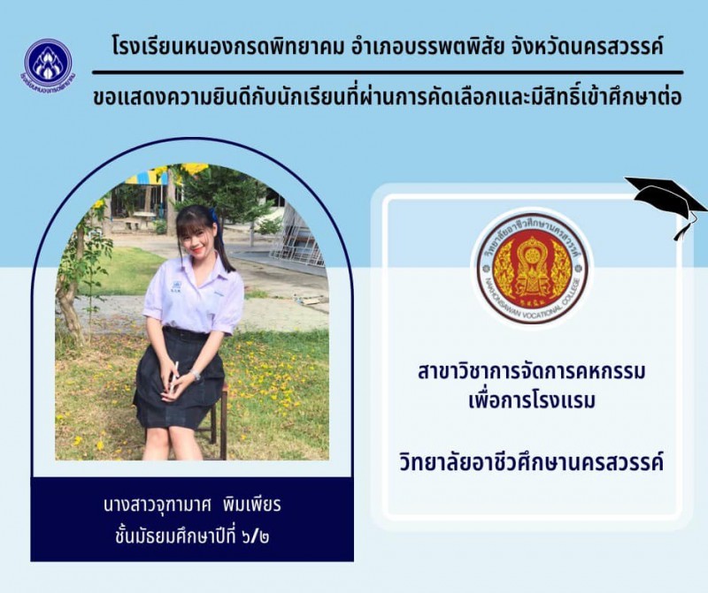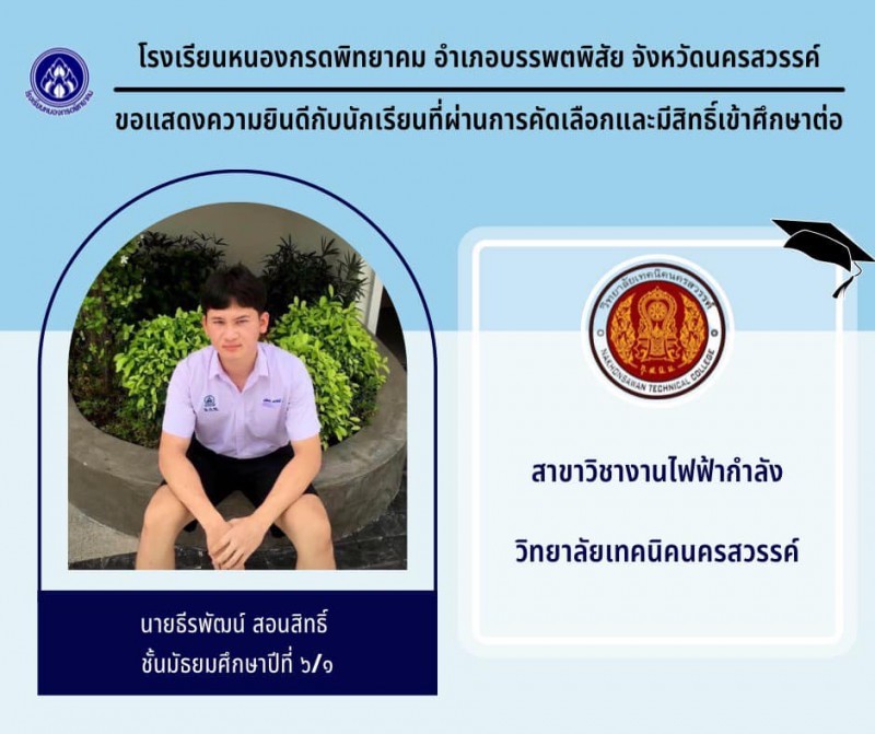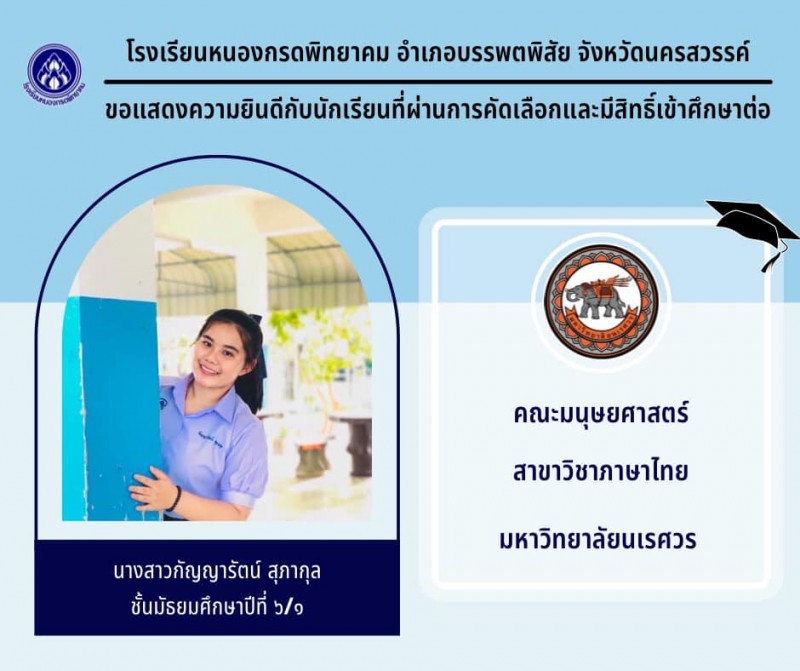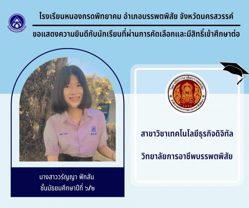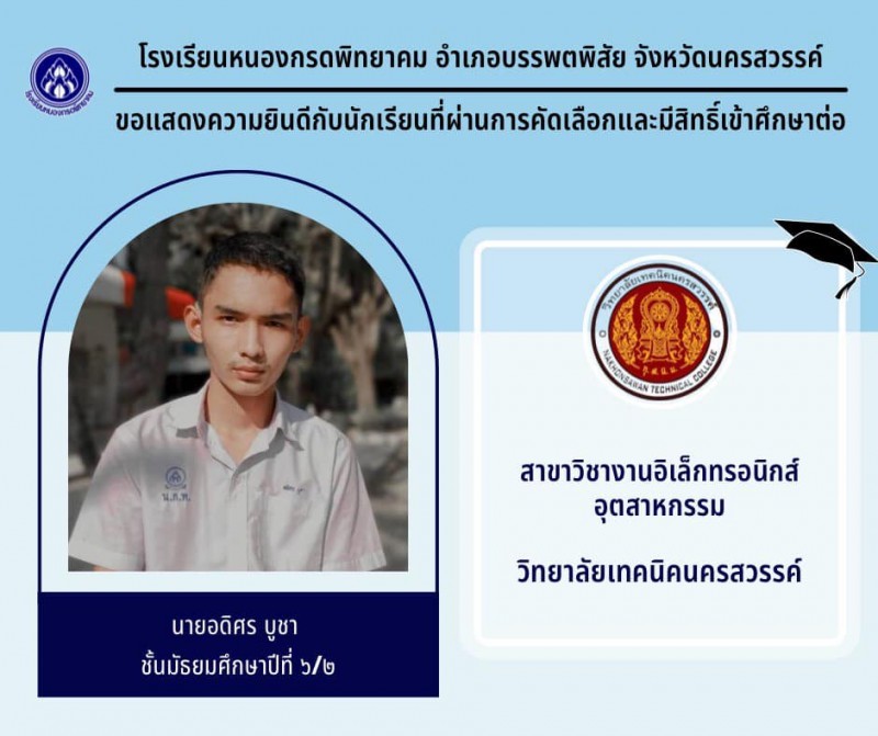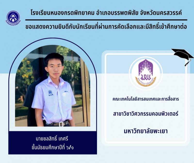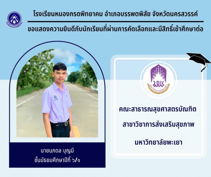 ยินดีกับนักเรียนชั้นมัธยมศึกษาปีที่ ๖ ที่ได้รับการคัดเลือกเข้าศึกษาต่อในระดับอุดมศึกษา