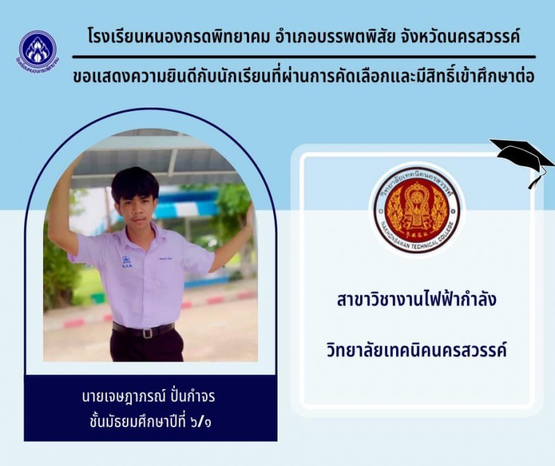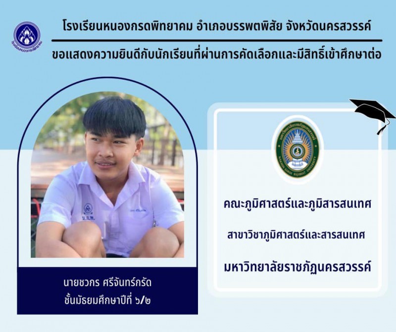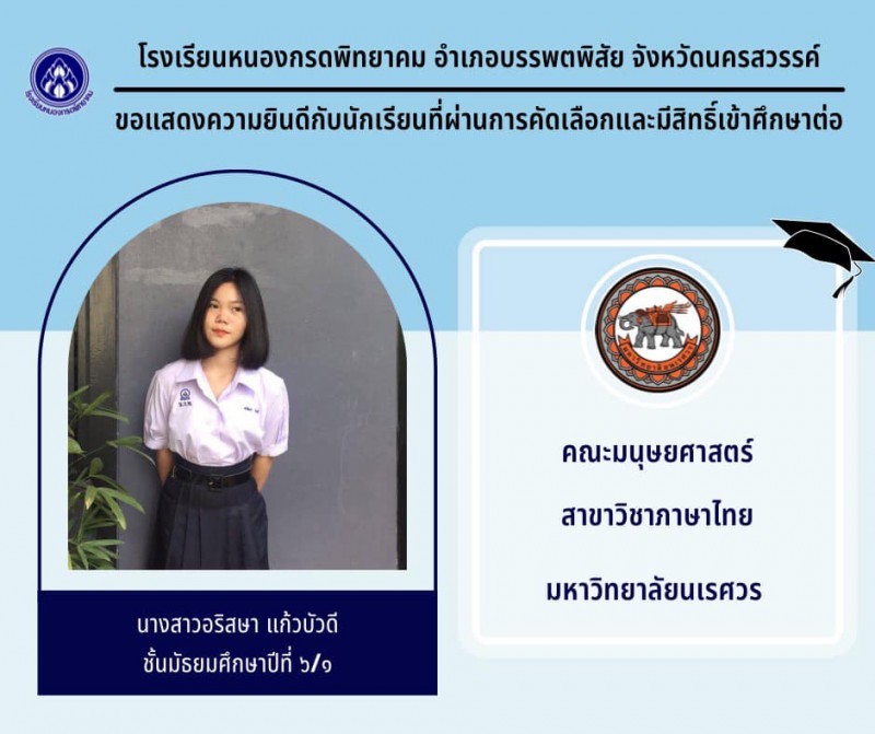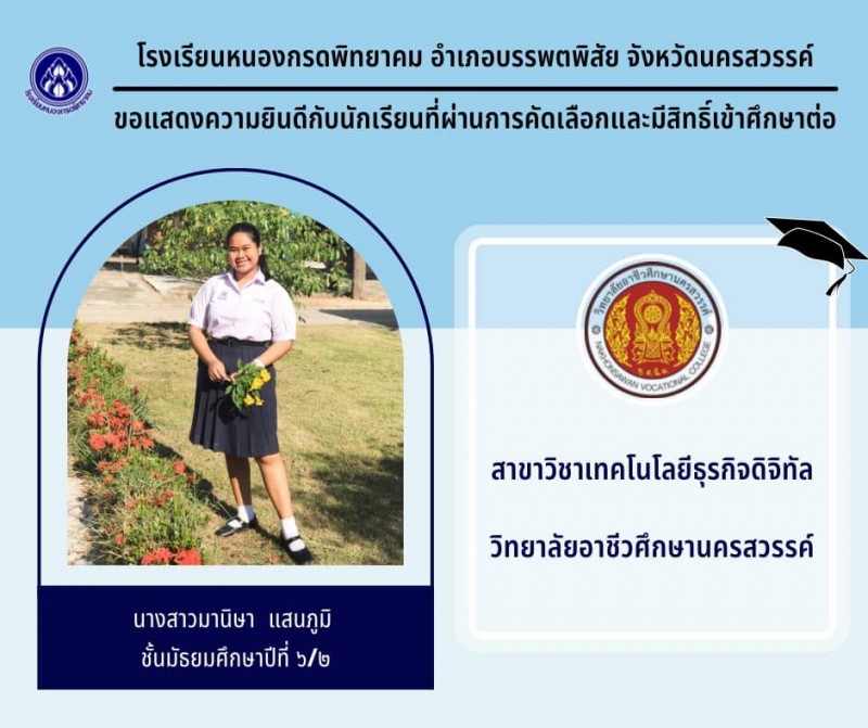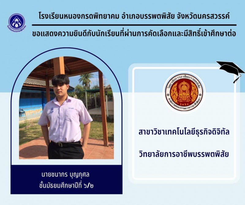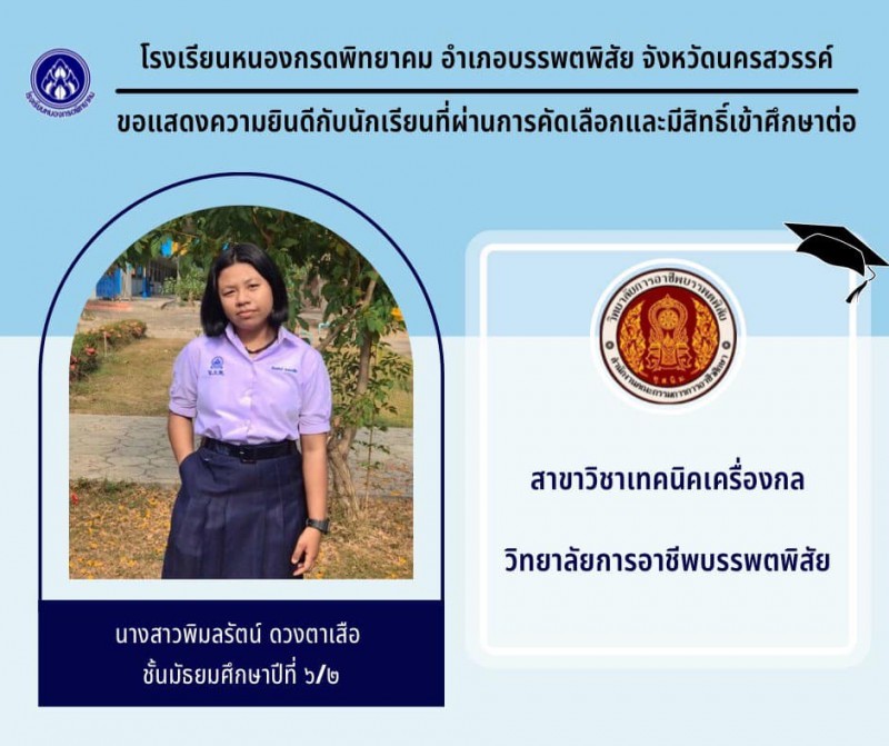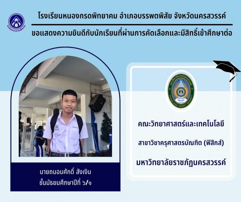 ยินดีกับนักเรียนชั้นมัธยมศึกษาปีที่ ๖ ที่ได้รับการคัดเลือกเข้าศึกษาต่อในระดับอุดมศึกษา