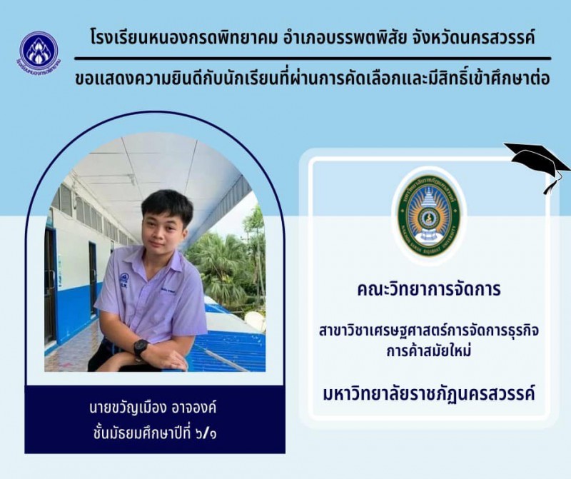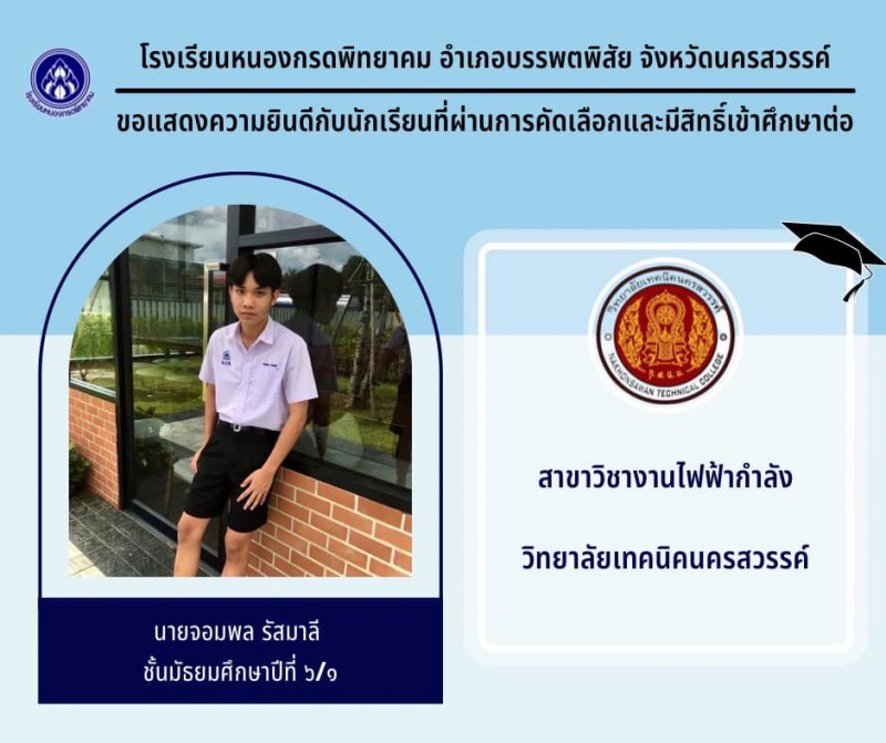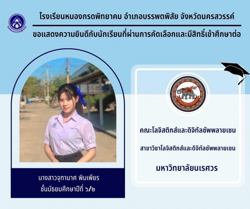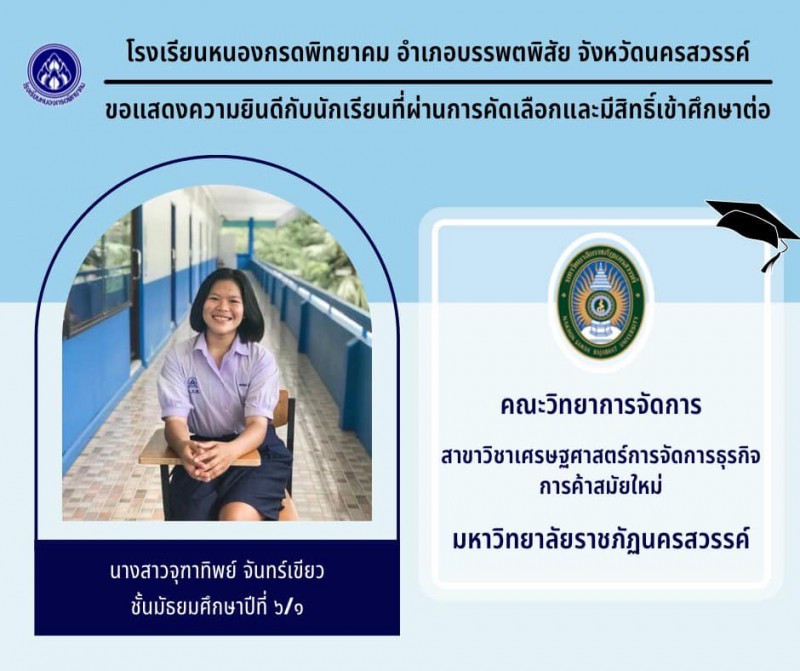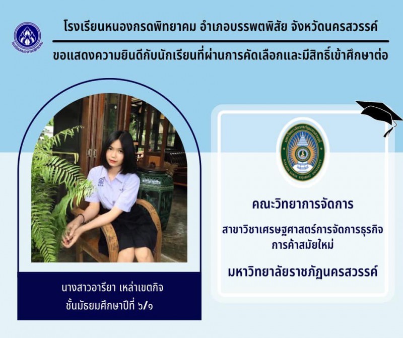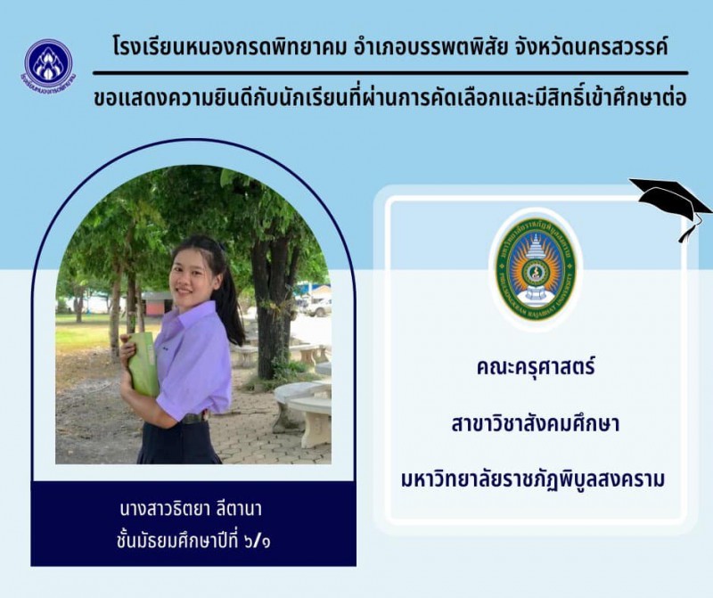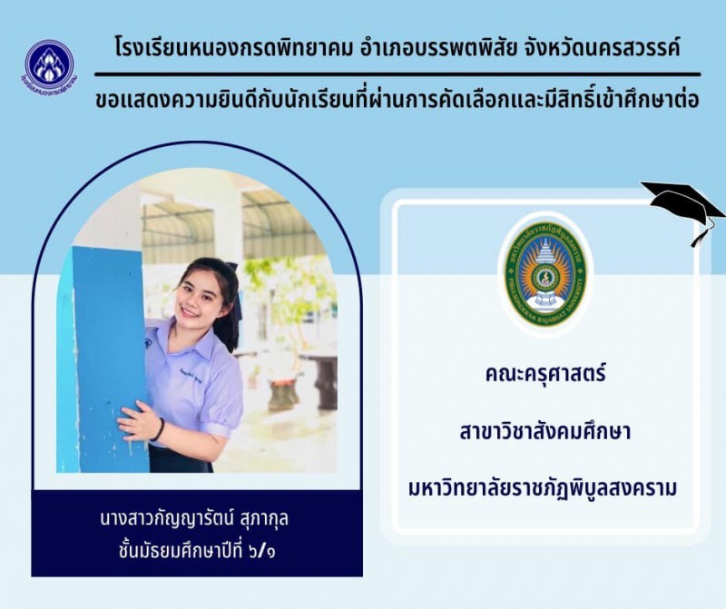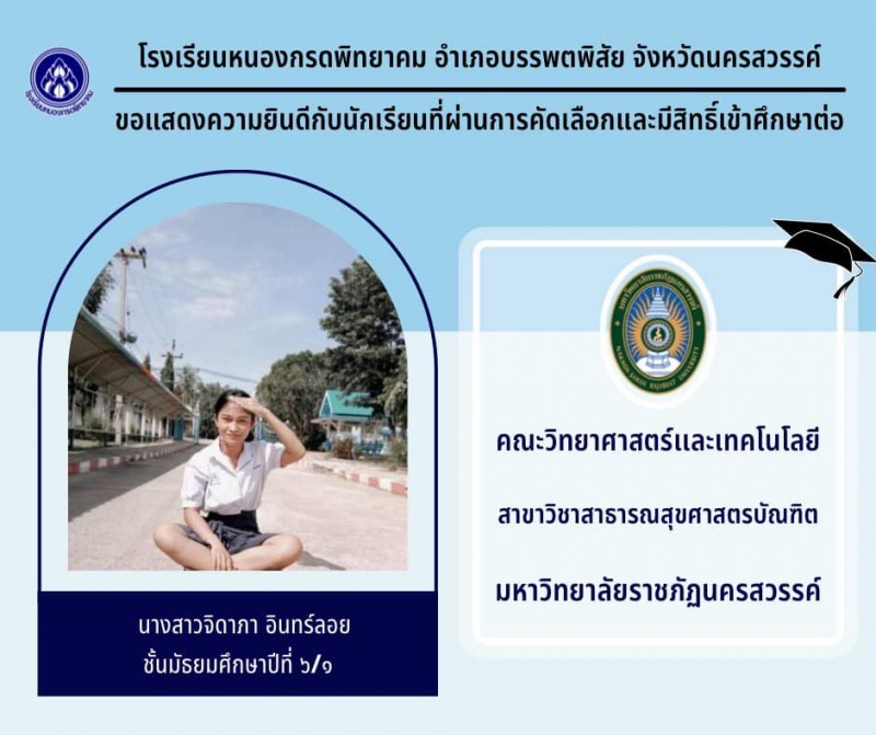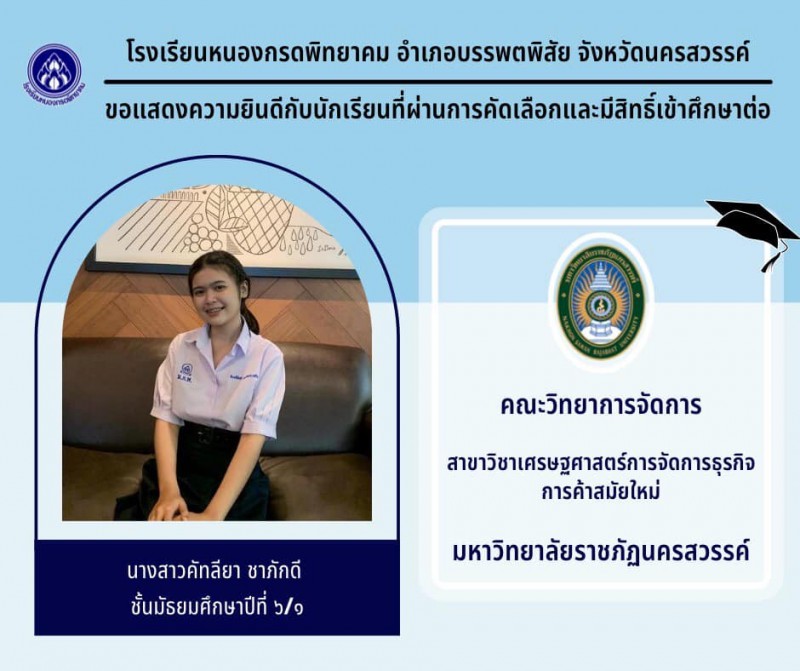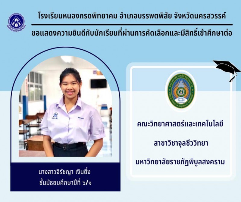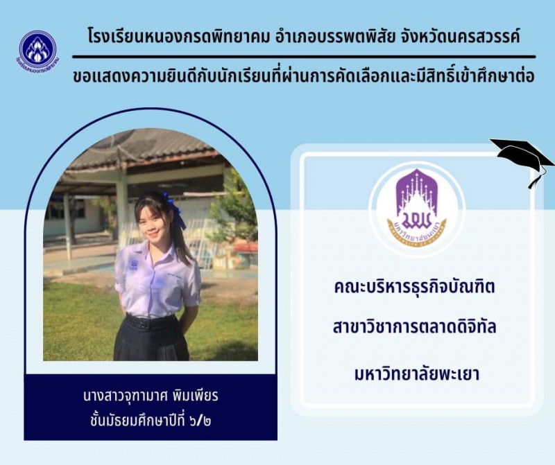 ยินดีกับนักเรียนชั้นมัธยมศึกษาปีที่ ๖ ที่ได้รับการคัดเลือกเข้าศึกษาต่อในระดับอุดมศึกษา