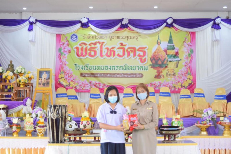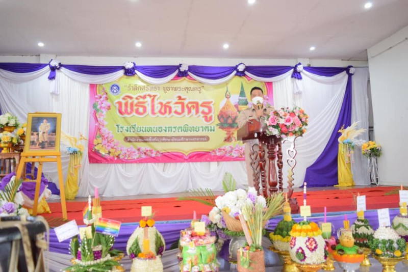 วันพฤหัสบดีที่ ๙ มิถุนายน ๒๕๖๕ โรงเรียนหนองกรดพิทยาคม จัดพิธีไหว้ครู “รำลึกศรัทธา บูชาพระคุณครู” ประจำปีการศึกษา ๒๕๖๕ ณ หอประชุม ๑๐๐/๒๗ โรงเรียนหนองกรดพิทยาคม