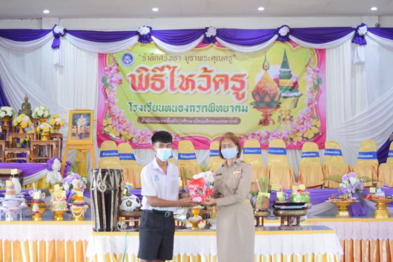 วันพฤหัสบดีที่ ๙ มิถุนายน ๒๕๖๕ โรงเรียนหนองกรดพิทยาคม จัดพิธีไหว้ครู “รำลึกศรัทธา บูชาพระคุณครู” ประจำปีการศึกษา ๒๕๖๕ ณ หอประชุม ๑๐๐/๒๗ โรงเรียนหนองกรดพิทยาคม
