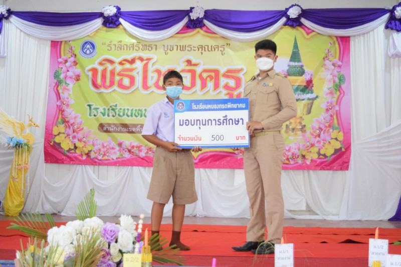 วันพฤหัสบดีที่ ๙ มิถุนายน ๒๕๖๕ โรงเรียนหนองกรดพิทยาคมจัดพิธีไหว้ครู “รำลึกศรัทธา บูชาพระคุณครู” ประจำปีการศึกษา ๒๕๖๕ ในโอกาสนี้ท่านผู้อำนวยการ รองผู้อำนวยการ คณะครูและบุคลากรทางการศึกษาโรงเรียนหนองกรดพิทยาคม และผู้ใหญ่ใจดี ได้มอบทุนการศึกษาจำนวน ๑๐๔ ทุน เป็นจำนวนเงินทั้งสิ้น ๕๘,๒๐๐ บาท ให้แก่นักเรียนโรงเรียนหนองกรดพิทยาคม