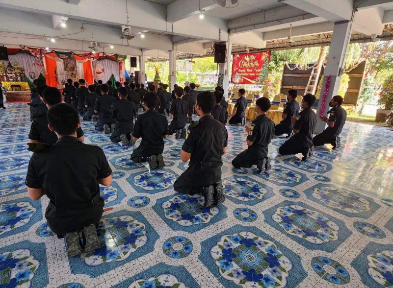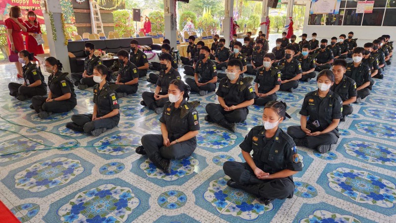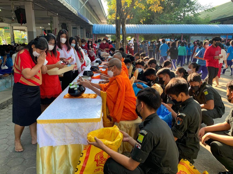 นักศึกษาวิชาทหารโรงเรียนหนองกรดพิทยาคม ร่วมพิธีสวดมนต์ นั่งสมาธิ ตักบาตรข้าวสารอาหารแห้งถวายพระพรชัยมงคล แด่สมเด็จพระเจ้าลูกยาเธอ เจ้าฟ้าพัชรกิติยาภา นเรนทิราเทพยวดี กรมหลวงราชสาริณีสิริพัชร มหาวัชรราชธิดา