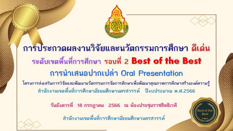 ระดับเขตพื้นที่การศึกษา ในการนำเสนอผลงานวิจัยดีเด่น รอบ Best of the Best