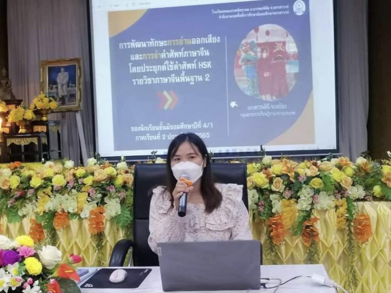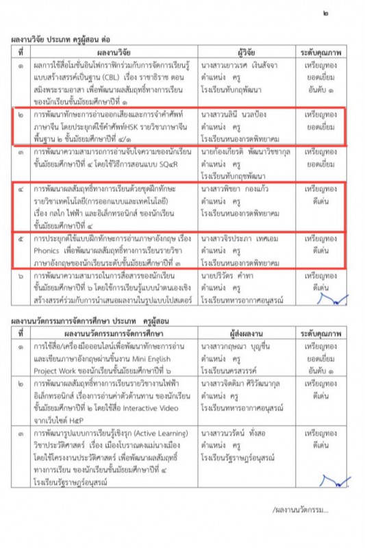 • นางสาวนลินี นวลป้อง ครูกลุ่มสาระการเรียนรู้ภาษาต่างประเทศ ที่ได้รับรางวัลเหรียญทองยอดเยี่ยม