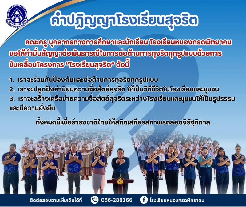 คำปฏิญญาโรงเรียนสุจริต คณะครู บุคลากรทางการศึกษา และนักเรียนโรงเรียนหนองกรดพิทยาคม