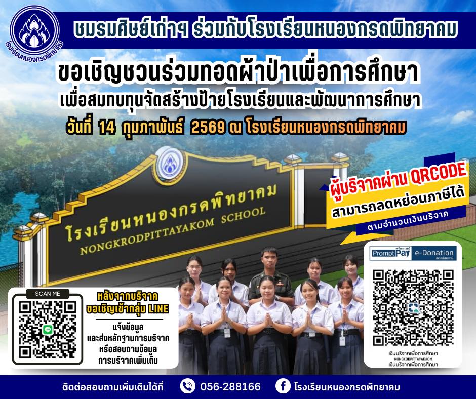 ( 25 เม.ย. 68 ) - ประกาศโรงเรียนหนองกรดพิทยาคม เรื่อง ปรับรูปแบบการจัดเรียนการสอน ในวันที่ ๓ - ๕ ธันวาคม ๒๕๖๗ ( 02 ธ.ค. 67 )